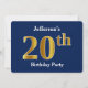 Invitation Blue, Faux Gold 20th Birthday Party + Nom personna