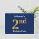 Invitation Blue, Faux Gold 2e fête d'anniversaire + Nom perso