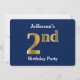 Cette conception d'invitation comporte le numéro ordinal "2e" avec un aspect faux or. Il comporte également un nom personnalisé et un arrière - plan bleu. Il pourrait être utilisé pour les invitations à la fête du deuxième anniversaire de quelqu’un.