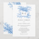 Invitation Blue Floral Chinoiserie Classing Monogram Elegant