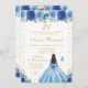 Invitation Blue Floral Dark Skin Princess Birthday Party