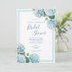 Belle aquarelle bleu & blanc hydrangea design graphismes embellissant chaque coin de cette belle invitation à la douche nuptiale. Parfaitement encadré avec un bord de pétoncle blanc. La coordination des polices ajoute à la beauté de ce design.
