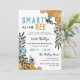 Fête de graduation florale pour une fête de graduation sur le thème des abeilles avec Smart As Can Bee, avec nid d'abeille, miel abeilles, et jolies fleurs en bleu. Ajoutez une photo à l'arrière. Invitation de remise de diplômes sur le thème des abeilles pour une fête de remise de diplômes préscolaire personnalisée avec une photo sur le dos. Invitation à la cérémonie de remise des diplômes de jardin d'enfants avec des abeilles au miel.