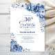 Cette invitation à 30ème anniversaire à la surprise florale bleue a été conçue pour préparer le terrain à une célébration vraiment mémorable. Les modèles de texte personnalisables vous permettent d'ajouter facilement le nom de l'invité honoré, les détails de la fête secrète et le lieu. Votre être aimé sera dans une nuit de rires et de souvenirs chéris. Vous pouvez choisir parmi une variété de types de papier et de styles d'angle pour créer des invitations uniques qui conviennent à votre goût. De plus, vous avez également la possibilité de télécharger l'invitation si vous préférez une version numérique.