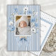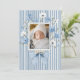 Beautiful blue watercolor whimsical tiny floral frame with green watercolor frame surrounding your new arrivals photo. On the reverse side lovely fonts and scripts done in coordinating colors baby birth announcement. A perfect announcement for any season.