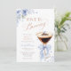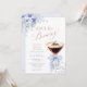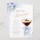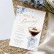 An elegant bridal shower invitation inspired by a romantic coffee theme with a delicate blue bow detail.