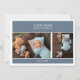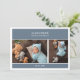 Welcome your precious little one to the world in style with this blue gender neutral photo baby announcement card. The design features clean slate blue rectangles for names and birthdate, baby portraits as placeholders, and a elegant font in white. Whether you’re welcoming a baby girl or baby boy, this design offers a beautiful way to introduce your newest miracle to the world.