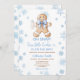 Blue Bow Gingerbread Christmas Baby Shower Winter Snowflakes Invitation