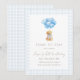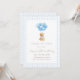 Classic puppy birthday design featuring a watercolor dog with a blue balloon bouquet and soft gingham background. Clean neutral layout with preppy charm—great for a boy birthday celebration or a gender-neutral puppy party theme.