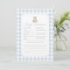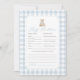 Invite friends and family to fill out their baby predictions and advice with this elegant blue gingham teddy bear baby shower game card.