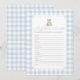 Invite friends and family to participate in a game of 'baby word scramble' with this elegant blue gingham teddy bear baby shower game card.
