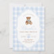 Invitation Blue Gingham Teddy Bear Beary First Birthday