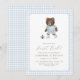 Invitation Blue Gingham Teddy Bear Soccer First Kick