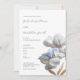 This elegant artistic minimalist wedding invitation features contemporary white 3 dimensional blue and gold flowers.