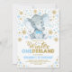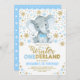 Invitation Blue Gold Elephant Winter ONE derland Snowflake