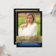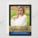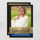 Couleurs royales bleu foncé et or de l'école. Belle écriture élégante avec l'effet d'être découpée, votre photo est encadrée d'un cadre noir et d'un effet de feuille or fantaisie et sophistiqué "Graduate" parfaitement customisé avec le nom, l'école et la photo du diplômé. L'image imprimée en feuille d'or est sophistiquée et élégante pour célébrer l'immense exploit de la jeune fille de sexe féminin diplômée ou n'importe qui!
