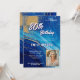 Invitation Blue Gold Marble Glitter Photo 80th Birthday