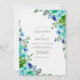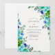 Delicate blue and teal blossoms mingle with vibrant green foliage in this charming botanical design. A fresh, lively aesthetic evokes a sense of natural beauty and serene elegance. Perfect for a spring or summer occasion.