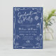 Be proud, rejoice and showcase this milestone of your favorite grad! Send out this quirky, whimsical, simple, modern, personalized photo invitation for an event to remember. Fun, white handwritten script typography and hand drawn graduation icon sketch doodles overlay a navy blue background. On the back, a hand drawn hearts border in navy blue overlays their custom photo. Personalize the custom text with your grad’s name, school, class year and party info on the front. Add your own photo on the back. Matching save the dates, thank you cards, banners, welcome signs, posters and other graduation goodies are also available in this trendy and whimsical collection. Guaranteed to add stylish fun to their special occasion!