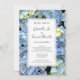 Invités Invitations à votre mariage avec le joli Faire-part de mariage Blue Hydrangea Blossom. Cette élégante invitation à un mariage fleuri personnalisé présente une photo florale numériquement peinte d'une fleur d'hydrangée bleue. Idéal pour une cérémonie de mariage et un événement de réception dans un jardin d'été. Disponible sous forme d'invitation imprimée à l'envoi ou en téléchargement numérique pour un partage numériquement en ligne facile.