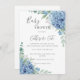 Blue hydrangeas on a white background beautiful baby shower invite. A perfect gender neutral baby shower invitation for any season. The watercolor hydrangeas are just beautiful. Classy & chic.