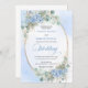 Invitation Blue Hydrangea Greenery Gold Oval Wedding Invite