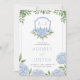 Ce magnifique design présente des fleurs d'hydrangée bleue et votre texte personnalisé ainsi que des crêtes aquarelle peintes avec un ruban et des hydrangées. Utilisez le formulaire modèle pour ajouter vos informations.