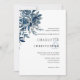 Elégante invitation de mariage avec un arrangement floral dénaturé bleu indigo en aquarelle. Floraux peints à la fine pointe de l'art.
