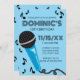 Get ready to rock the mic with this fun and modern music-themed birthday invitation! Featuring a bold blue microphone graphic, playful black musical notes, and stylish art deco-inspired fonts, this design strikes the perfect balance between cool and celebratory. The clean layout and bright sky blue background make it ideal for a karaoke party, music lover’s birthday, or rock star celebration.