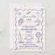 A charming nautical-inspired bachelorette design created for lake weekends, boat trips, and coastal celebrations. The front features playful blue doodle illustrations—sailboat, seashells, compass, shrimp, wine glass—all framed inside a wavy hand-drawn border with soft beach-striped background accents. The coordinating back includes a fully editable weekend itinerary, perfect for multi-day trips, cruises, or destination parties. Personalize every detail to create a stylish, cohesive keepsake your guests will love.