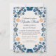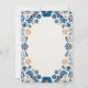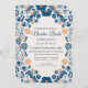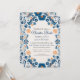 This Blue Orange Floral Elegant Fiesta Spanish Wedding Invitation design features an intricate floral pattern that wraps around the border, showcasing delicate blue and orange flowers interwoven with curling vines and leaves. The color palette, consisting mainly of soft blues with touches of warm orange, creates a harmonious contrast, evoking a hand-painted, artisanal quality. The symmetry of the design along with the detailed floral motifs adds a traditional, handcrafted charm, reminiscent of Mexican folk art.