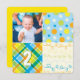 Invitation Blue Patchwork Motif Carrés Boy Photo Anniversaire