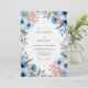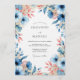This design features a delicate watercolor arrangement of blue blossoms and peachy coral foliage. The ethereal palette evokes a sense of gentle romance and natural beauty. The artistic watercolor style adds a touch of softness and charm.