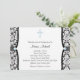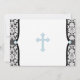 Invitation Blue Pearl Croix Bleu Noir Damas Christening