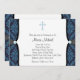 Invitation Blue Pearl Croix Bleu Noir Damas Christening