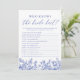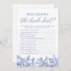 Blue Who Knows The Bride Best Fête des mariées Game The Blue Floral Who Knows The Bride Best Fête des mariées Game est une activité ludique et engageante qui met à l'épreuve les connaissances des invités sur le futur marié. Les participants répondent à des questions liées aux préférences, aux expériences et aux traits de personnalité de la mariée. La personne avec les réponses les plus correctes est couronnée comme celui qui connaît le mieux la mariée, ajoutant une touche amusante et personnelle à la célébration de la douche nuptiale.