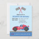 Un invitation de fête d'anniversaire sur le thème de la course pour les garçons d'anniversaire qui aiment les voitures de course. Cette invitation vient avec un conducteur de course dans une voiture de course bleu et rouge avec des décorations d'étoiles et des éléments de drapeaux à damiers noir et blanc. Personnalisez avec les détails de votre partie dans le modèle texte fourni.