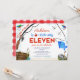 Bleu Rouge Pêche Ofish Onze Anniversaire Invitation Garçons pêche thème onzième anniversaire invitation comprenant une bobine de pêche, poisson bleu, un bateau, cottontail, leurres de pêche, boîte d'abordage et dragon mouches.