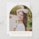 This fun retro inspired graduation announcement features space for a single photo on the front framed by an arch in shades of pink. It also has space for the graduate's name, school, and class year. The back of the announcement has space for a second photo and more text.