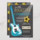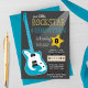 Turn up the volume for an unforgettable celebration! This blue rockstar birthday party invitation brings bold, music-themed style to your child’s special day. The design features a striking blue electric guitar illustration paired with a cool retro amplifier graphic that displays your event details in a fun, concert-style layout. The headline mixes modern script and bold block fonts, creating an energetic “rockstar” look kids love.