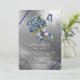 Invitation Blue Roses Butterfly Silver Bridal Shower