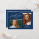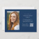 Invitation Blue Script QR Code 3 Photo Graduation Party