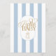 Hello baby Elegant minimal baby shower invitation that features a custom hello baby typographyand blue & white stripe pattern and a cute baby bottle with a bow. For a linen textured look choose the paper type "Laid".