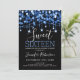 Elégant Bleu & Black Sweet 16 Anniversaire Fête Sparkly String modèle d'invitation.