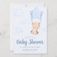 Celebrate the upcoming arrival with this adorable baby shower invitation featuring a sweet teddy bear holding a star balloon, surrounded by soft watercolor clouds. The gentle blue color palette creates a calm, dreamy atmosphere — perfect for a baby boy shower.