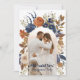 Cette belle arche boho est un modèle d'image, prêt pour votre photo de couple romantique. Le dos a un modèle modifiable où vous pouvez facilement ajouter vos propres détails de fiançailles. Ce modèle a l'écriture bleue, s'il est trop sombre pour être lisible sur votre photo, s'il vous plaît voir notre version de police blanche de ce même design. Voir nos collections pour plus de belles papeterie mariage de boho. Blue Terracotta Floral Arch Photo Engagement Party Invitation.
