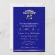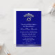 Jolie invitation d'anniversaire Quinceanera bleue et argent. Une jolie couronne brillante argentée orne le sommet de cette invitation bleue. Le texte graphique du numéro 15 dans un look argenté, est assis sous la couronne et un ruban argenté accentue le bas, des invitations. Personnalisez le texte, pour la célébration du 15e anniversaire de vos filles.