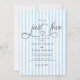 Invitation Blue vertical stripes Modern Script Heart Wedding