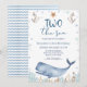 Blue Whale Boys Two The Sea 2nd Birthday Invitation Jolie baleine 2nd anniversaire invitation pour un garçon avec une baleine bleue, ancres, étoiles de mer et bouteille. Cette invitation de deuxième anniversaire de la mer est idéale pour une fête de deuxième anniversaire sous la mer.