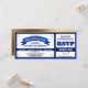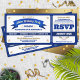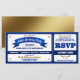 Fun, allstar baseball game ticket style birthday party invitation in your team or school colors of blue and gold or blue and white with gold accents.